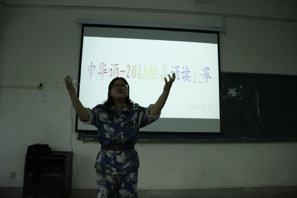 (通讯员:周泽阳)中华颂,颂中华,美术学系于9月24日中午在A11教学楼202教室举办了2015年中华颂经典朗读比赛,借此提高我系师生语言文字应用能力,营造传承和弘扬中华优秀传统文化的浓厚氛围。