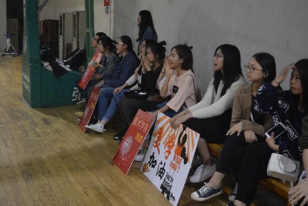 美学系的球员举手投足间都牵动着观众们的心,场下是此起彼伏的尖叫声、呐喊声、助威声,使篮球场上的气氛不断升温。不管是球队落后或是领先,亢奋或失落,拉拉队员们不变的热情始终伴随着球队,让队员们找回状态,在球场上尽情地释放青春。我系欧阳老师更是前来为球员们加油助威。