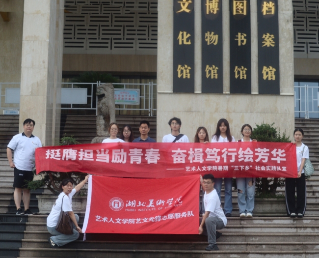 7月10日,艺文先锋志愿服务队走进“中国传统古村落”下店子村,探寻茶马文化,参观房县苏维埃政府旧址,汲取红色力量,激发奋斗前行的内生动力。随后,师生们在“全省百佳村民委员会”赤岩村村委会展开座谈交流,探讨艺术赋能助农的路径,探索构建“艺术+智慧乡村”新模式,为乡村基层治理提供资政议事方案,助力乡村“数智化”发展提质增效。