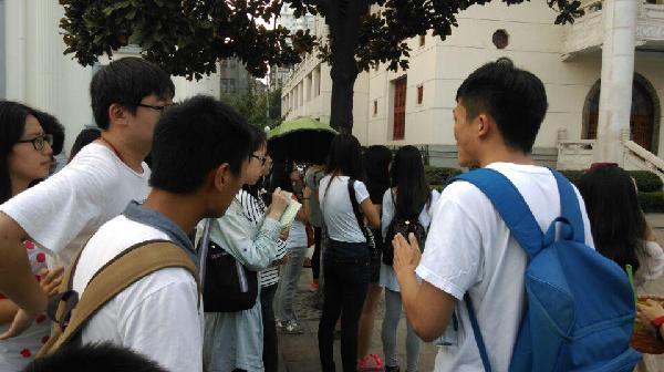 老师们以其风趣幽默的语言为员工们讲述了这些老建筑的风格、外形特点、内部装饰等等,同学们聚精会神的欣赏着每一个老建筑,有的拍照,有的做记录,也有的在互相讨论其建筑风格。在整个过程当中,同学们近距离的接触到了这些雄伟的老建筑,听完老师的讲解后同学们更加感受到了武汉这座城市丰厚的文化底蕴和人文内涵,汲取了丰厚的艺术养分。